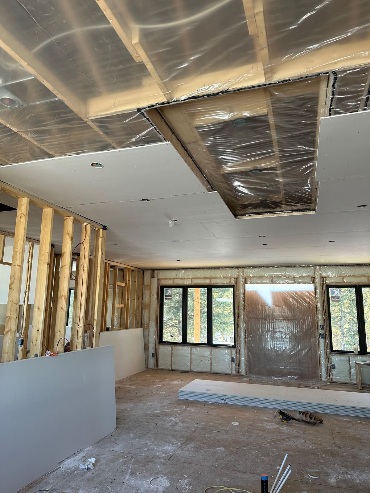 Professional drywall hanging, mudding, taping, and finishing. Smooth walls and ceilings ready for paint with multiple finish levels available.